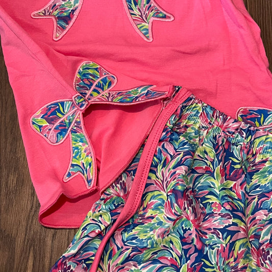 Tropical Floral Bows Appliqué Short Set