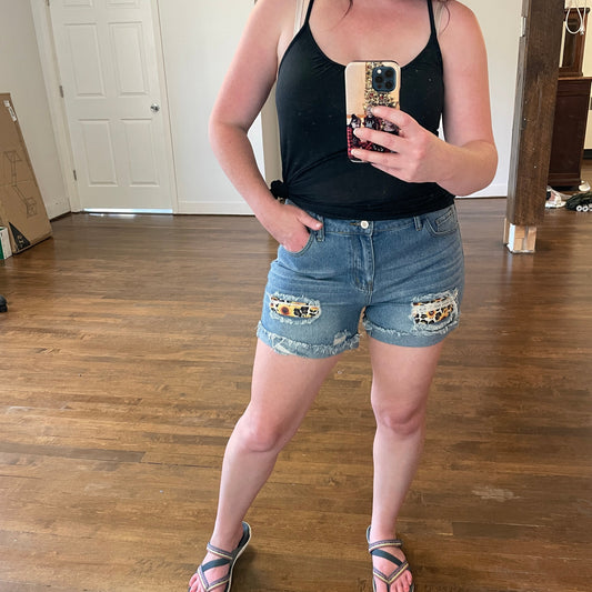 Women's Distressed Sunflower Patch Denim Shorts