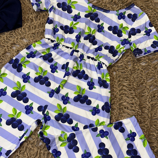 Blueberry Stripe Short Sleeve Romper
